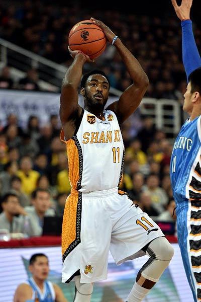 13日晚,中职篮第六轮比赛在各地举行。马布里因伤缺阵,让备受中国篮坛瞩目的“京晋大战”有些暗淡。好在山西队外援富兰克林轰下本赛季开赛以来的单场最高分61分,成为本轮中国男子篮球职业联赛的焦点。最终,山西汾酒男篮坐镇主场以125比114战胜到访的北京首钢男篮。图为富兰克林(左)在比赛中投篮。