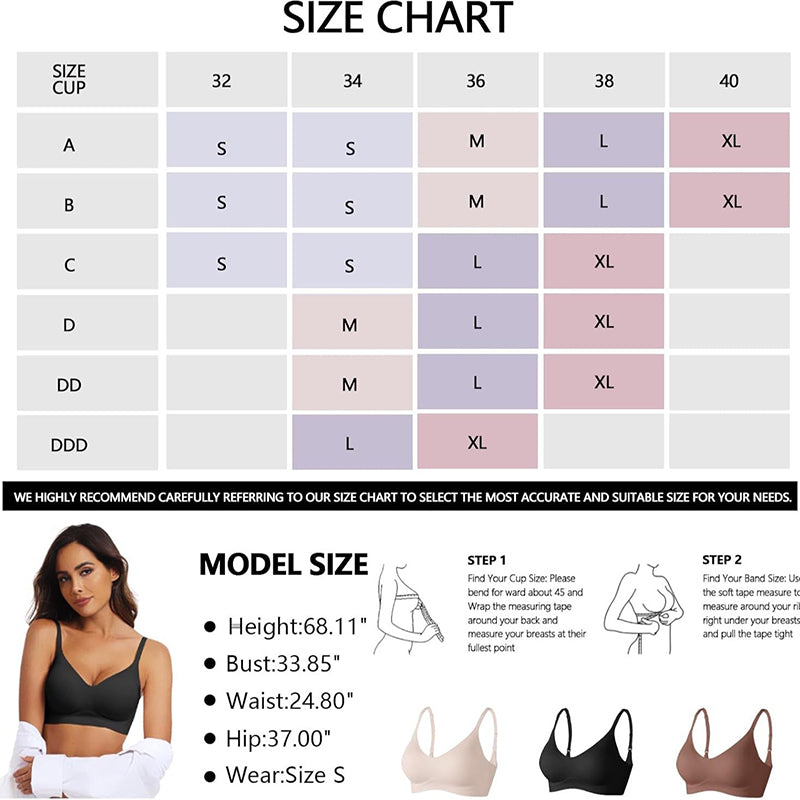 【Lightly Lined Wirefree Bra for Women】Our lightly lined wirefree bra is made of 66% nylon and 34% spandex. Our comfortable seamless bra gives you a "ultra Comfortable" feeling, making it suitable for 24-hour wear as both an everyday bra and a sleep bra.